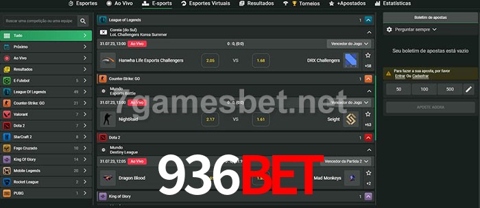 O 936Bet oferece uma grande seleção de opções de apostas em e-sports com probabilidades competitivas